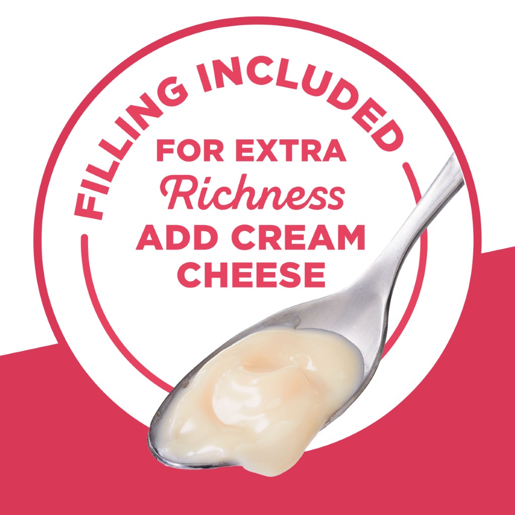 FILLING: Corn syrup, water, sugar, cream cheese powder (cream cheese (pasteurized milk and cream, cheese culture, salt, carob bean gum), nonfat milk) modified corn starch, cream, contains 2% or less of: natural flavor, lactic acid, gellan gum, salt, titanium dioxide (color), xanthan gum, mono and diglycerides, sodium citrate.