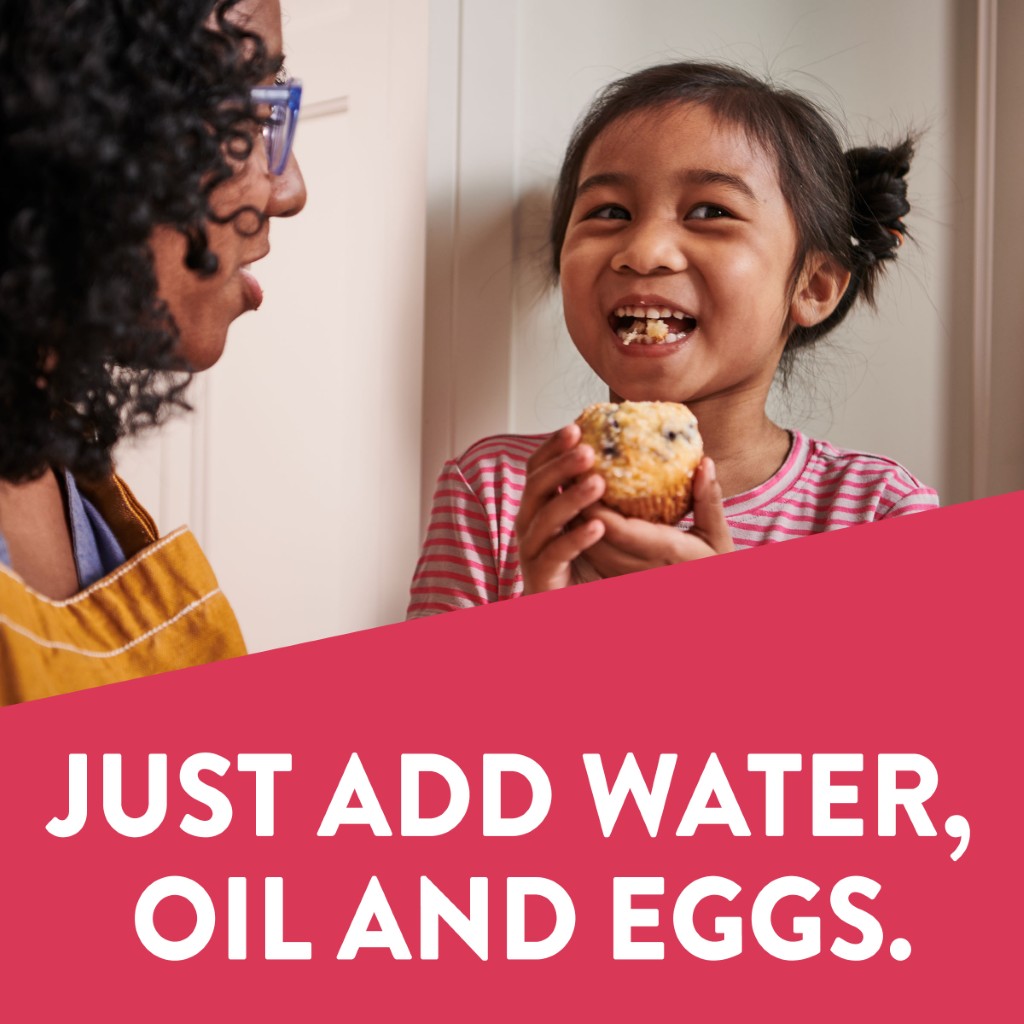 STIR together water, oil eggs and muffin mix until blended. Batter will be slightly lumpy. SPOON 1 1/2 tablespoons muffin batter into each cup. SPOON 1 teaspoon filling (enclosed) into each muffin cop. SPOON 1 1/2 tablespoons muffin batter on top of filling, making sure filling is enclosed by batter.