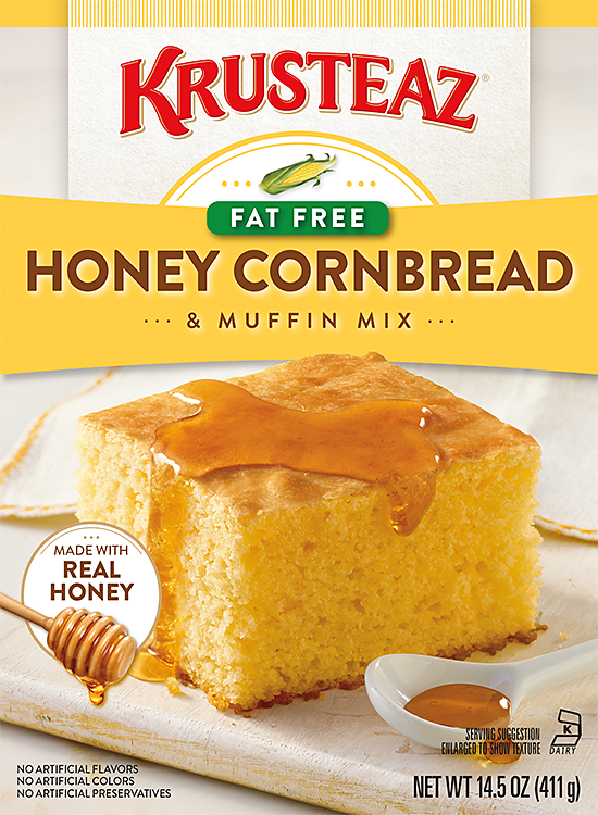 • MAKE IT YOUR OWN: Use this Krusteaz Fat Free Honey Cornbread and Muffin Mix to make a pan of cornbread, 24 mini muffins or 12 standard muffins. Serve it up spicy by adding diced jalapenos and diced green onions or go sweet with cranberries.