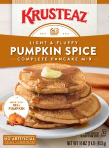 In medium bowl, whisk together Krusteaz Buttermilk Pancake Mix and water until blended. (Batter will be lumpy.) Fold in remaining ingredients. Pour slightly less than ¼ cup batter per pancake onto prepared griddle.